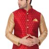 ethnix Dark Red Polyester Blend Regular Fit Bundi
