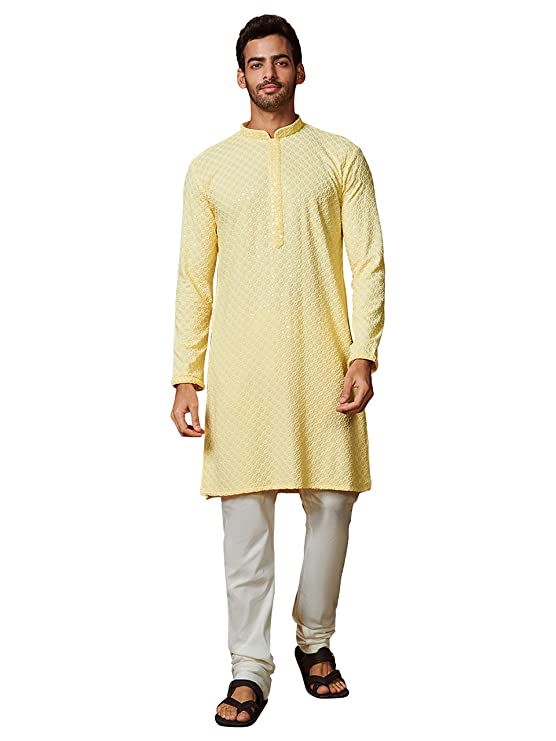 Product Details Material CompositionBlended Viscose Care InstructionsDry Clean Only Length32 StyleModern Country of OriginIndia About this Item Package Contain: Kurta Set Stylish Kurta set to bring out your best style game in functions. Charming and classic outfit. Highlighted with velvet collar and fancy buttons. Fashion: Your amazing fashion sense inspires everyone. Carry forward this tradition and flaunt in your best look teaming in this ethinic wear on any occasion Brand: Manyavar is your one stop destination for making any given day an occasion, we understand that your clothes are an extension of your personality. The entire garment is made by a single artisan instead of chain-system production. We recommend to use this item on your special occasion Everyone uses partywear on numerous occasions, give this ethinic outfit as a thoughtful gift for your loved one s next birthday, anniversary, wedding or any occasion. This is why it makes the perfect present for your dad, husband, son, or friend.