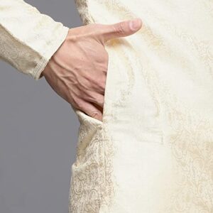 Manyavar Kurta Set for Men, Full Sleeves Mandarin Collar Ethnic Kurta Set for Engagement, Wedding, Party Solid (Beige)