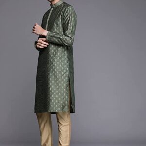 Manyavar Kurta Set for Men, Full Sleeves Mandarin Collar Ethnic Kurta Set for Engagement, Wedding, Party Solid (Green)