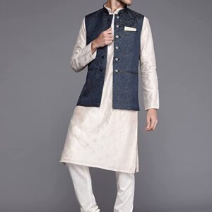 Product Details Material TypeArt Silk StyleNehru Jacket PatternAll Over Self Design Care InstructionsDry Clean Only Country of OriginIndia About this Item Material :- Comfortable material which is specially designed for your skin which will provide you a elegant and trendy look Jacket Type :- This festive wear nehru jacket for men underlines its casual and ethnic allure through its latest design. Fashion :- Your amazing fashion sense inspires everyone. Carry forward this tradition and flaunt in your best look teaming in this ethinic wear on any occasion Brand :- Manyavar is your one stop destination for making any given day an occasion, we understand that your clothes are an extension of your personality.The entire garment is made by a single artisan instead of chain-system production. We recommend to use this item on your special occasion Everyone uses partywear on numerous occasions, give this ethinic outfit as a thoughtful gift for your loved one s next birthday, anniversary, wedding or any occasion. This is why it makes the perfect present for your dad, husband, son, or friend.