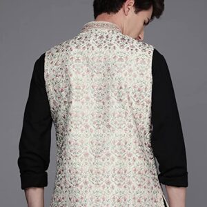 Manyavar Mens Jacket, Nehru Jacket For Men, Ethnic Jacket for Festival, Wedding, Party, Sleevless Jacket (Off White)