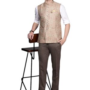 Manyavar Nehru Jacket for Men, Ethnic Jacket for Festival, Wedding, Party, Sleevless Jacket, All Over Self Design