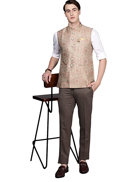 Product Details Material TypeArt Silk StyleNehru Jacket PatternAll Over Self Design Care InstructionsDry Clean Only Country of OriginIndia About this Item Material :- Comfortable material which is specially designed for your skin which will provide you a elegant and trendy look Jacket Type :- This festive wear nehru jacket for men underlines its casual and ethnic allure through its latest design. Fashion :- Your amazing fashion sense inspires everyone. Carry forward this tradition and flaunt in your best look teaming in this ethinic wear on any occasion Brand :- Manyavar is your one stop destination for making any given day an occasion, we understand that your clothes are an extension of your personality.The entire garment is made by a single artisan instead of chain-system production. We recommend to use this item on your special occasion Everyone uses partywear on numerous occasions, give this ethinic outfit as a thoughtful gift for your loved one s next birthday, anniversary, wedding or any occasion. This is why it makes the perfect present for your dad, husband, son, or friend.