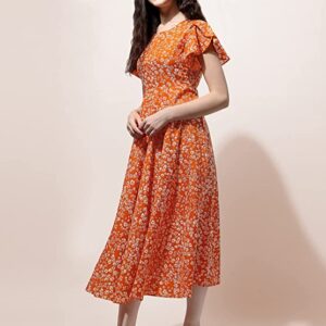 Maxi/Full Length A-Line dress with Boat Neck and Butterfly Sleeve